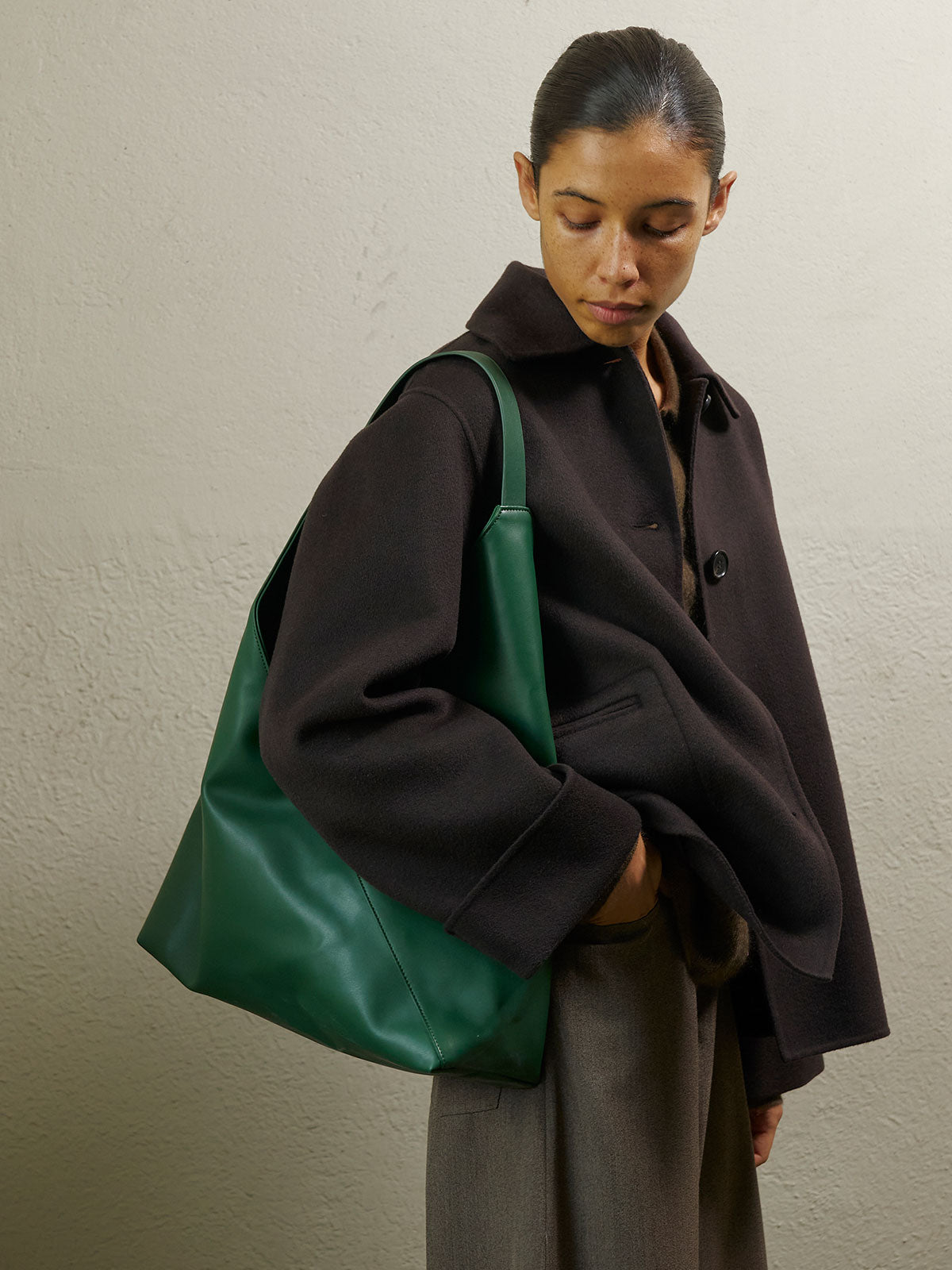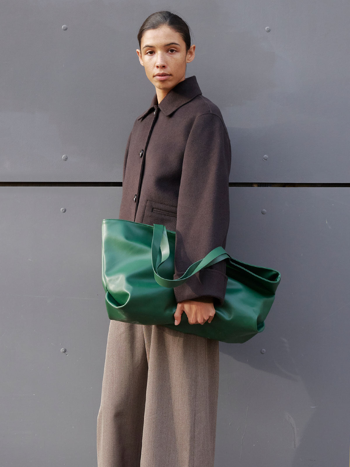 Pine Green ist der frische Klassiker der Saison. Inspiriert von satten Waldtönen bringt dieses tiefe Tannengrün eine Ruhe in deinen Look und setzt gleichzeitig ein subtil-edgy Statement. Der Farbton wirkt elegant, natürlich und trotzdem absolut zeitgemäß – perfekt, um cleanen Outfits mehr Dimension zu geben oder monochrome Styles aufzubrechen. Entdecke vegane Handtaschen wie unsere Origami Bag, die Business Tote oder die Versatile Tote in diesem markanten, vielseitigen Grünton.