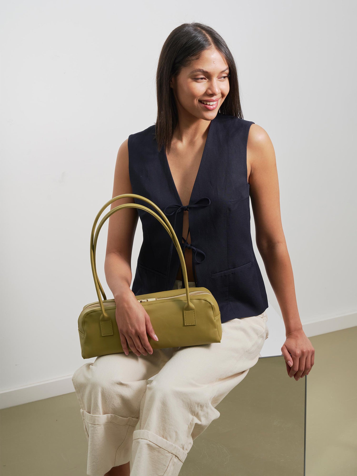 With its elongated shape, the East West Bag offers plenty of space for everything you need in everyday life. This handbag combines timeless design with a retro twist and is 100% vegan – made from the innovative vegan leather alternative Oleatex® and lined with deadstock fabric. The bag is a limited edition, produced only 150 times in total and individually numbered.