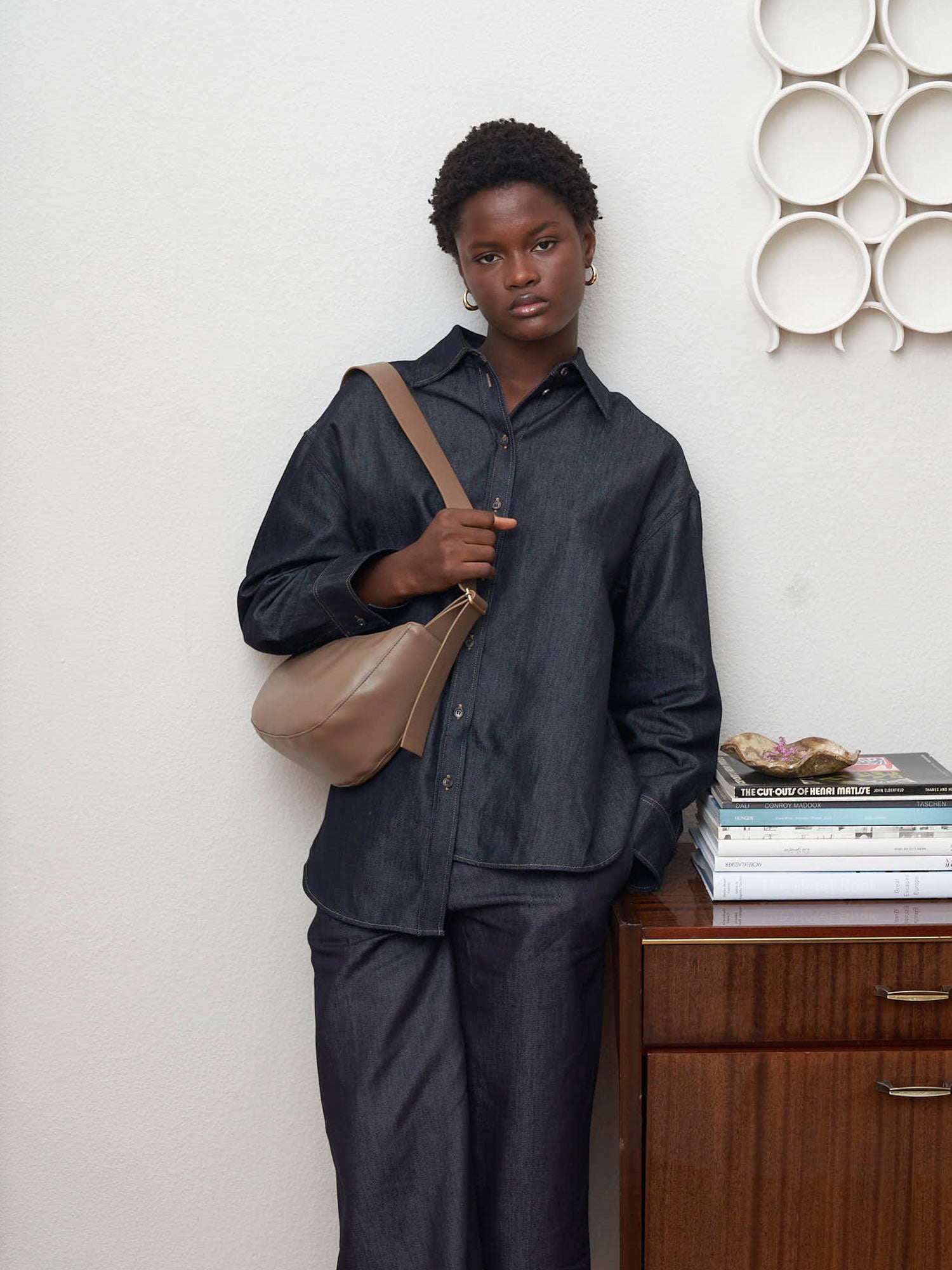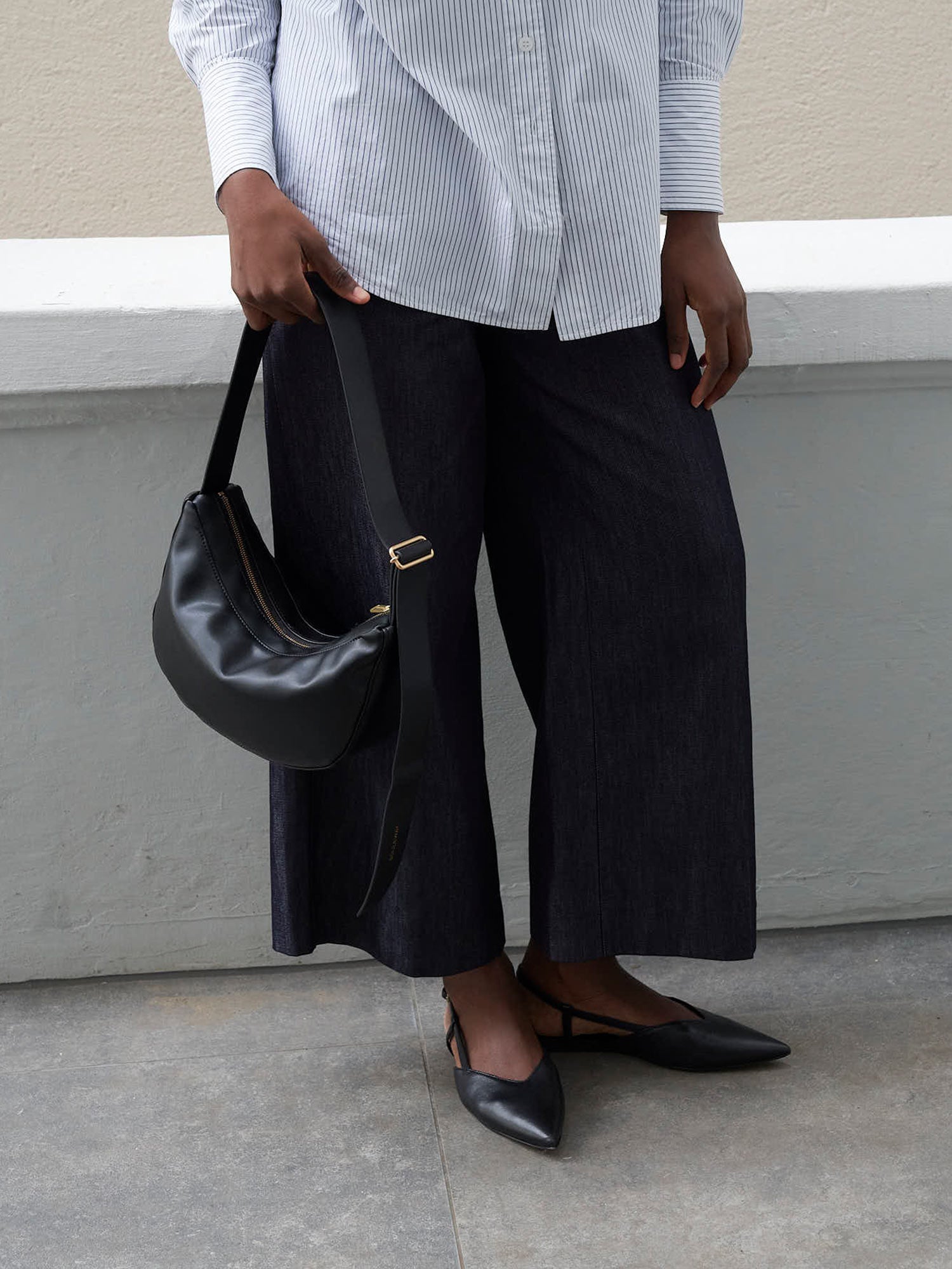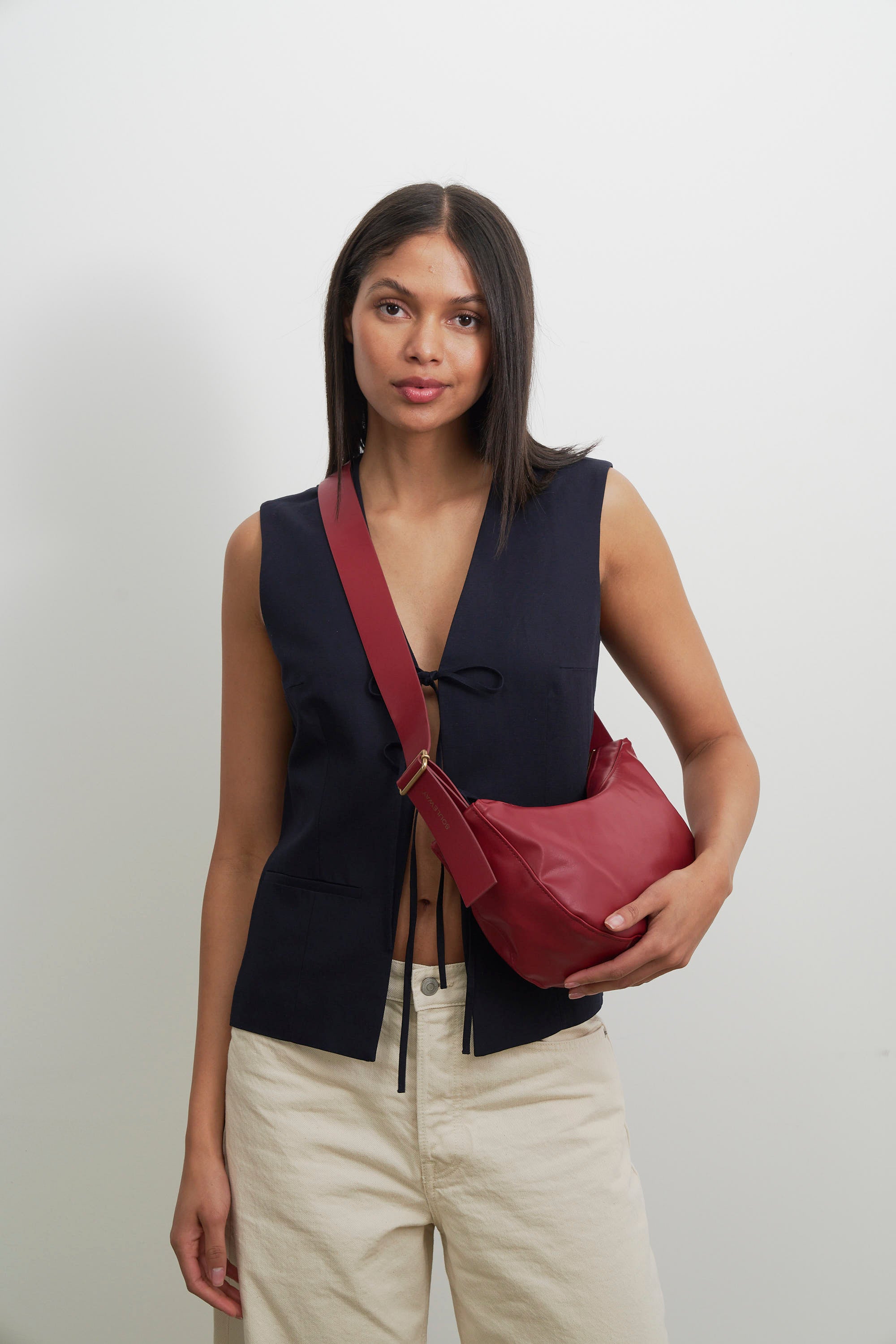 The strap of this Half Moon Bag is adjustable. This allows you to adapt the bag to your size and easily switch between wearing it crossbody or over the shoulder.