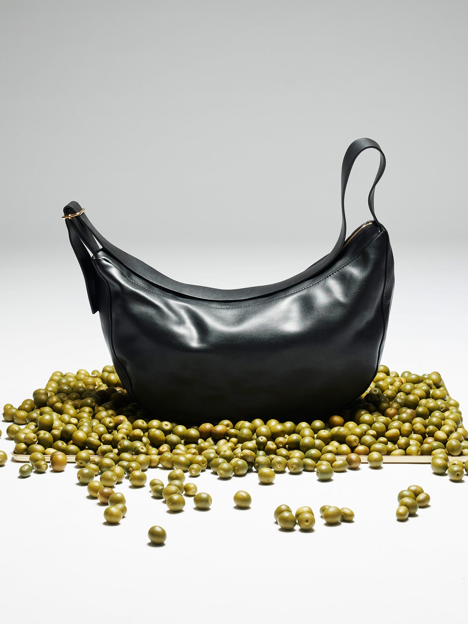 This small bag is made from the vegan leather alternative Oleatex and impresses with its premium craftsmanship and modern look. Oleatex is made from olive industry waste and provides the same visual and qualitative characteristics as animal leather. The Half Moon Bag S can be worn crossbody or over the shoulder. This handbag is also available in a larger version as the Half Moon Bag.