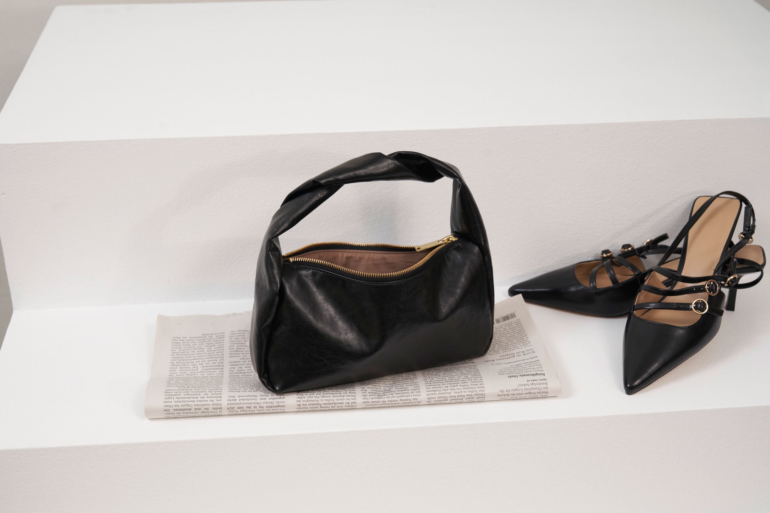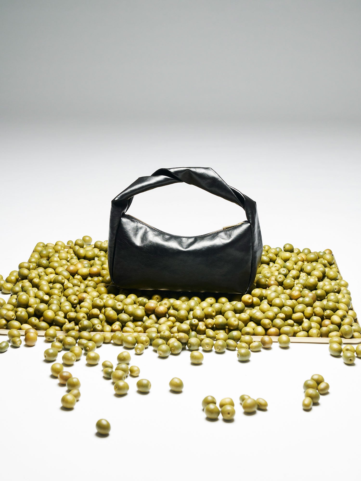 The Twist Bag combines elegant design with eco-friendly innovation. Made from Oleatex, a vegan leather alternative derived from olive industry waste, this handbag sets new standards. With its compact size, the Twist Bag is the perfect clutch for going out and offers space for all your everyday essentials. Phone, keys, and wallet can be safely stored in the bag, which closes with a zipper.