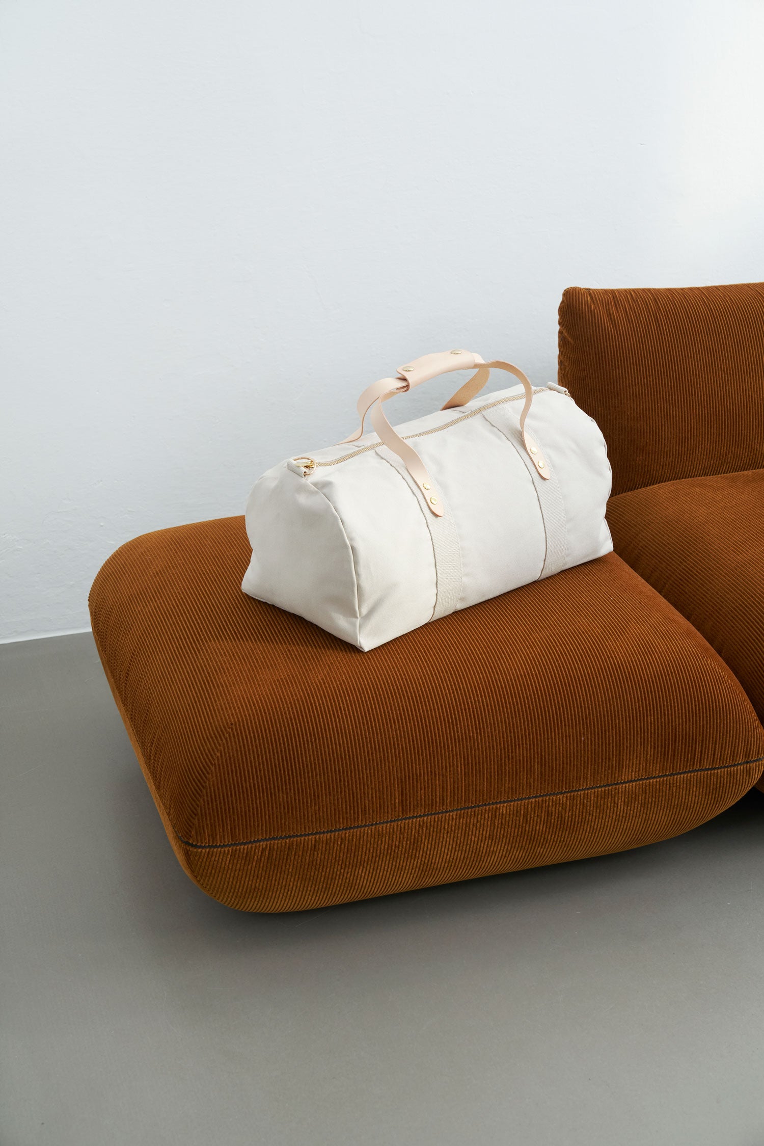 Our Vegan Weekender is a sustainable travel bag free from animal components. Made with cotton for straps and main material, it is particularly durable yet pleasantly lightweight – ideal for comfortable and conscious travel.