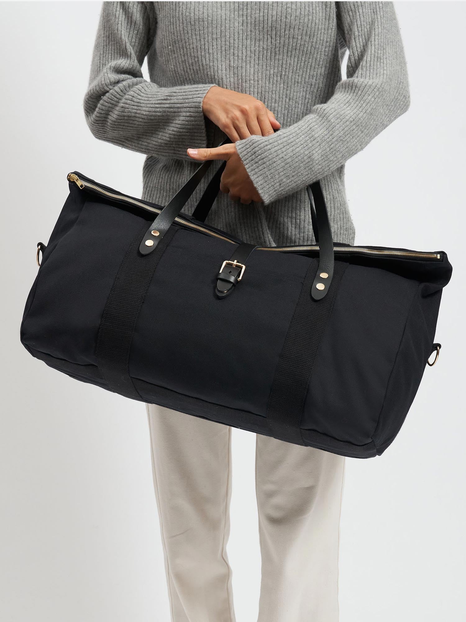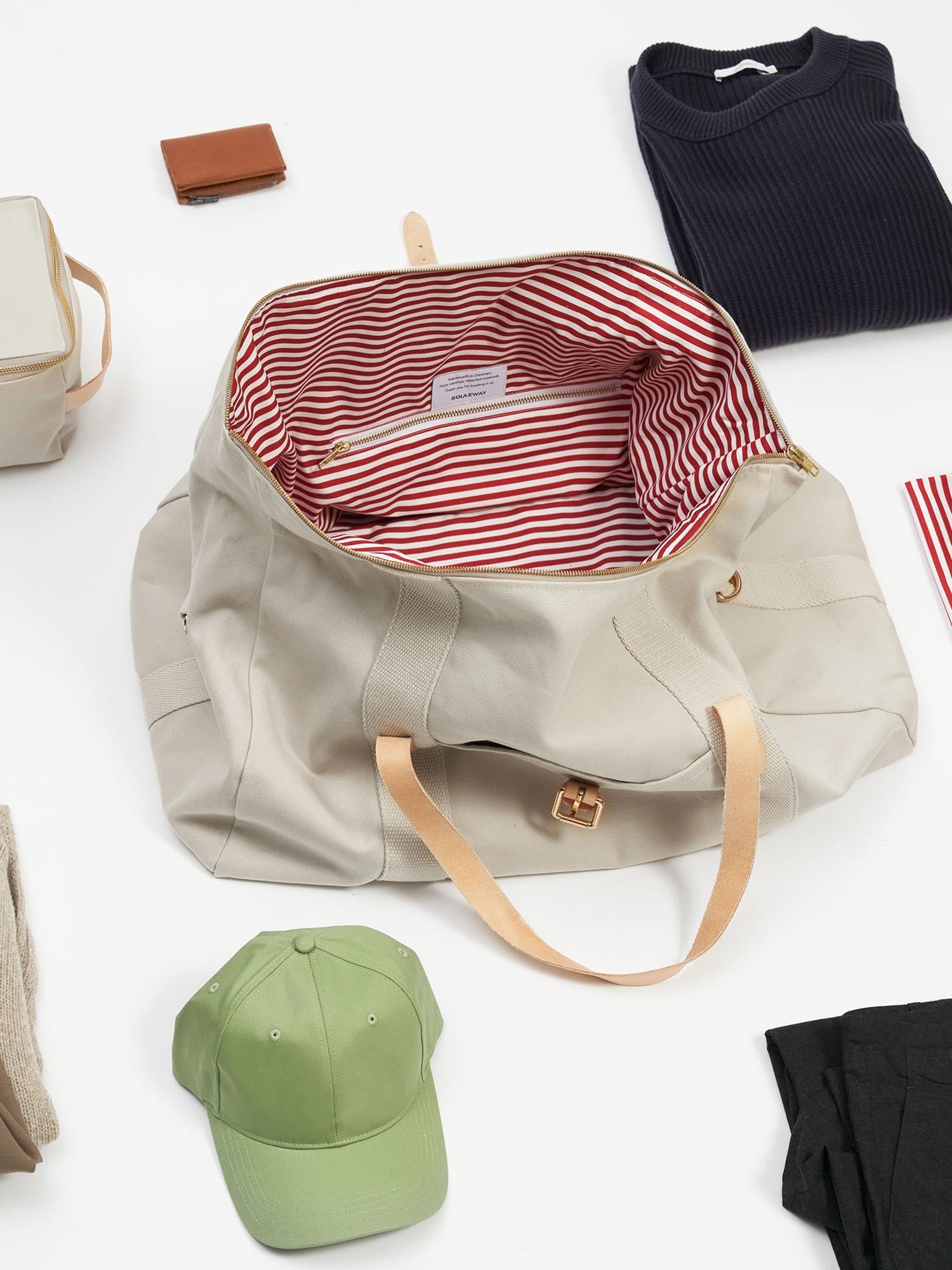 Malgré ses matériaux naturels de haute qualité, le Weekender est léger. Grâce à la bandoulière fournie, il peut être porté confortablement à l’épaule ou en crossbody, même lorsqu’il est bien rempli.