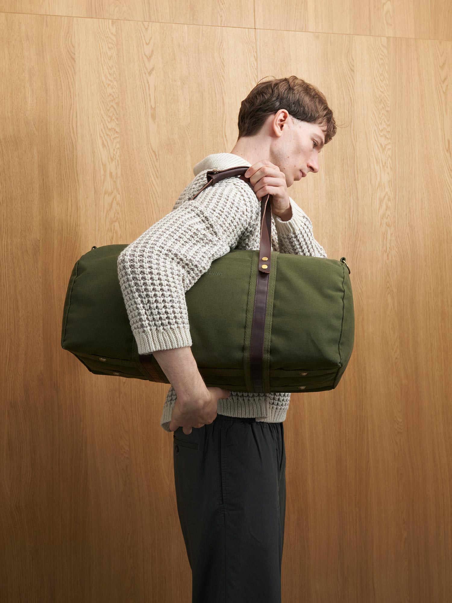 Malgré ses matériaux naturels de haute qualité, le Weekender est léger. Grâce à la bandoulière fournie, il peut être porté confortablement à l’épaule ou en crossbody, même lorsqu’il est bien rempli.