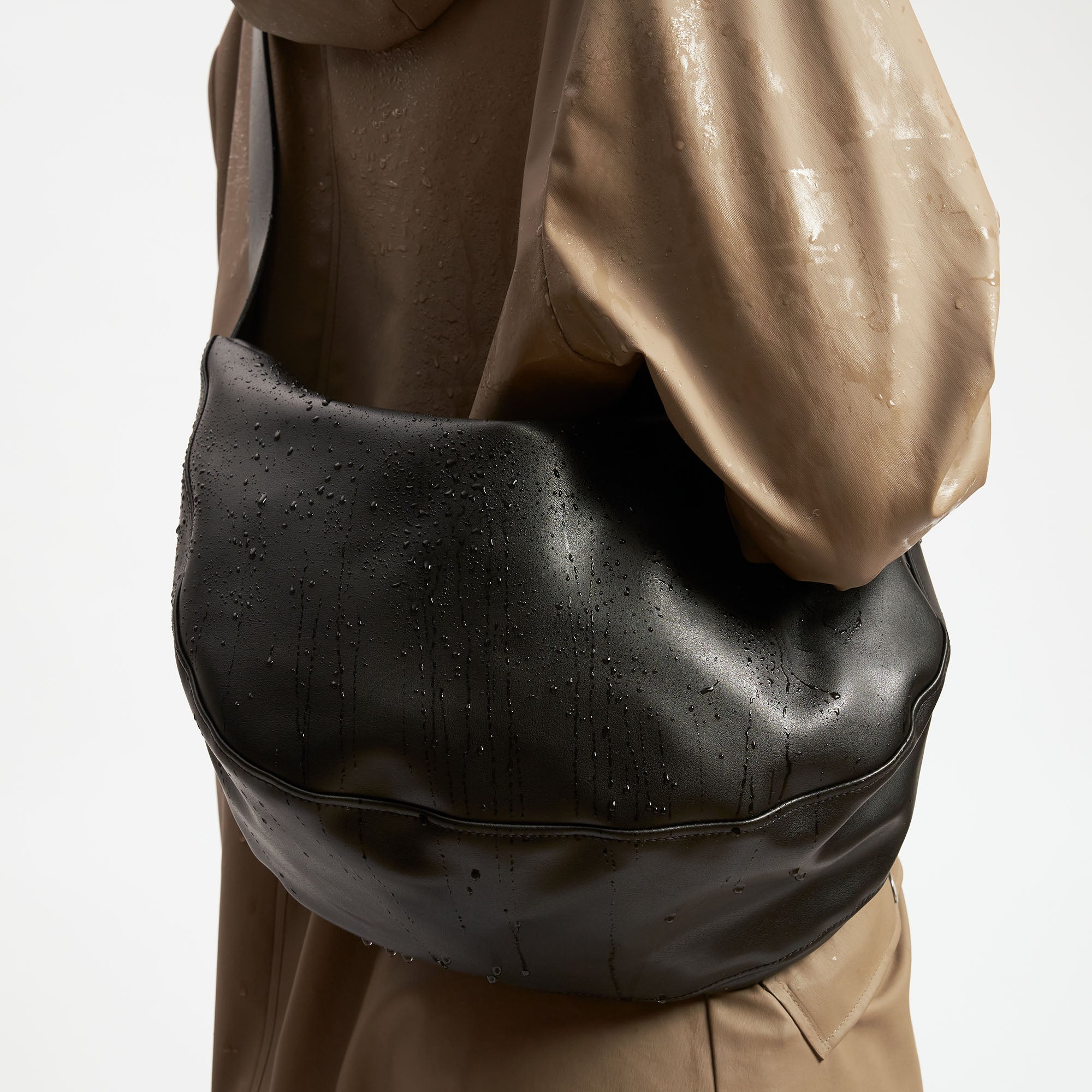 De Half Moon Bag is gemaakt van het vegan leer-alternatief Oleatex en valt op door zijn gebogen lijnen en hoogwaardige afwerking. Oleatex wordt vervaardigd uit restafval van de olijvenindustrie en biedt dezelfde visuele en kwalitatieve eigenschappen als dierlijk leer. Deze tas kan over de schouder of crossbody worden gedragen en heeft een afsluitbaar binnenvak.