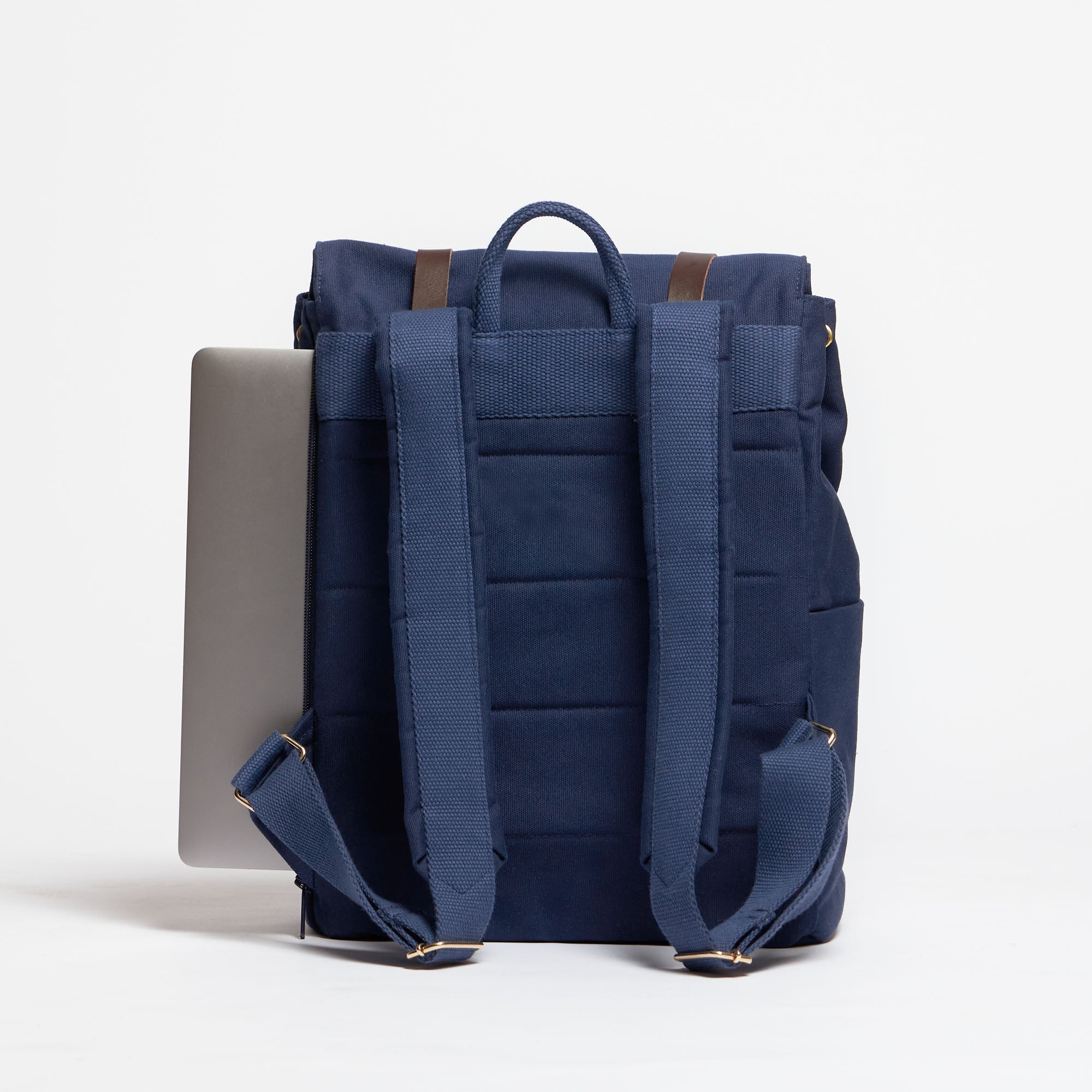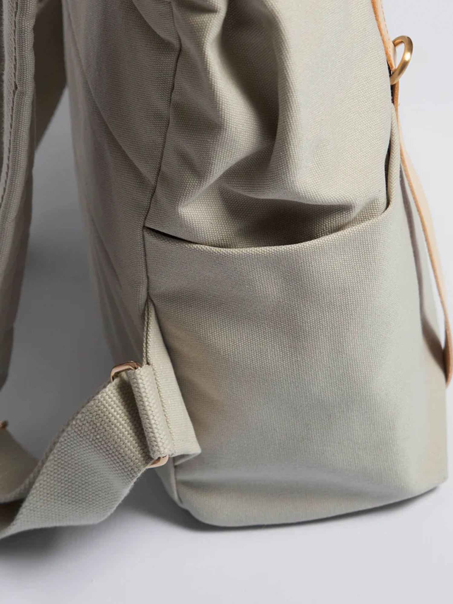 Onze Premium Backpack van duurzaam canvas en verfijnde lederen elementen combineert elegant design en functionaliteit. Zes D-ringen aan de voorkant zorgen ervoor dat je de rugzak op verschillende manieren kunt sluiten. De bovenste flappen kun je oprollen of over elkaar leggen, afhankelijk van je stijl. Dankzij een speciaal laptopvak dat via een discrete rits aan de achterkant bereikbaar is, heb je je laptop altijd binnen handbereik. Binnenin bieden drie extra vakken voldoende ruimte voor een overzichtelijke organisatie van je essentials.