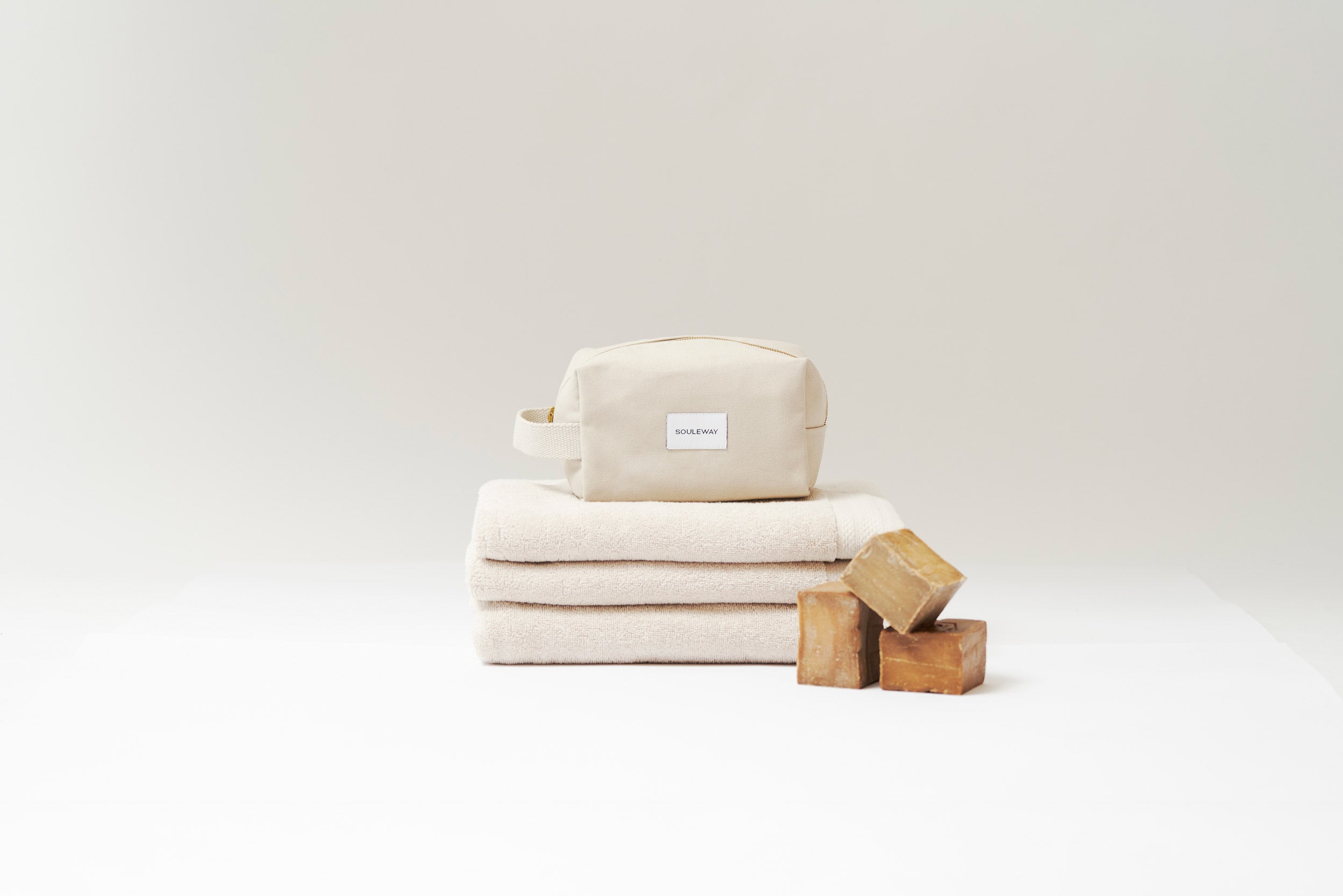 Dieser große Kulturbeutel wird aus wasserabweisendem Canvas gefertigt und mit Details aus pflanzlich gegerbtem Leder versehen. Mit dem minimalistischen Souleway-Look und dem funktionalen Innenleben mit sechs Innenfächern begleitet er dich zuverlässig auf jeder zukünftigen Reise.