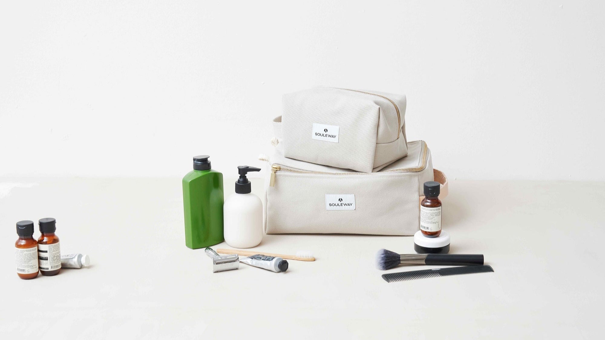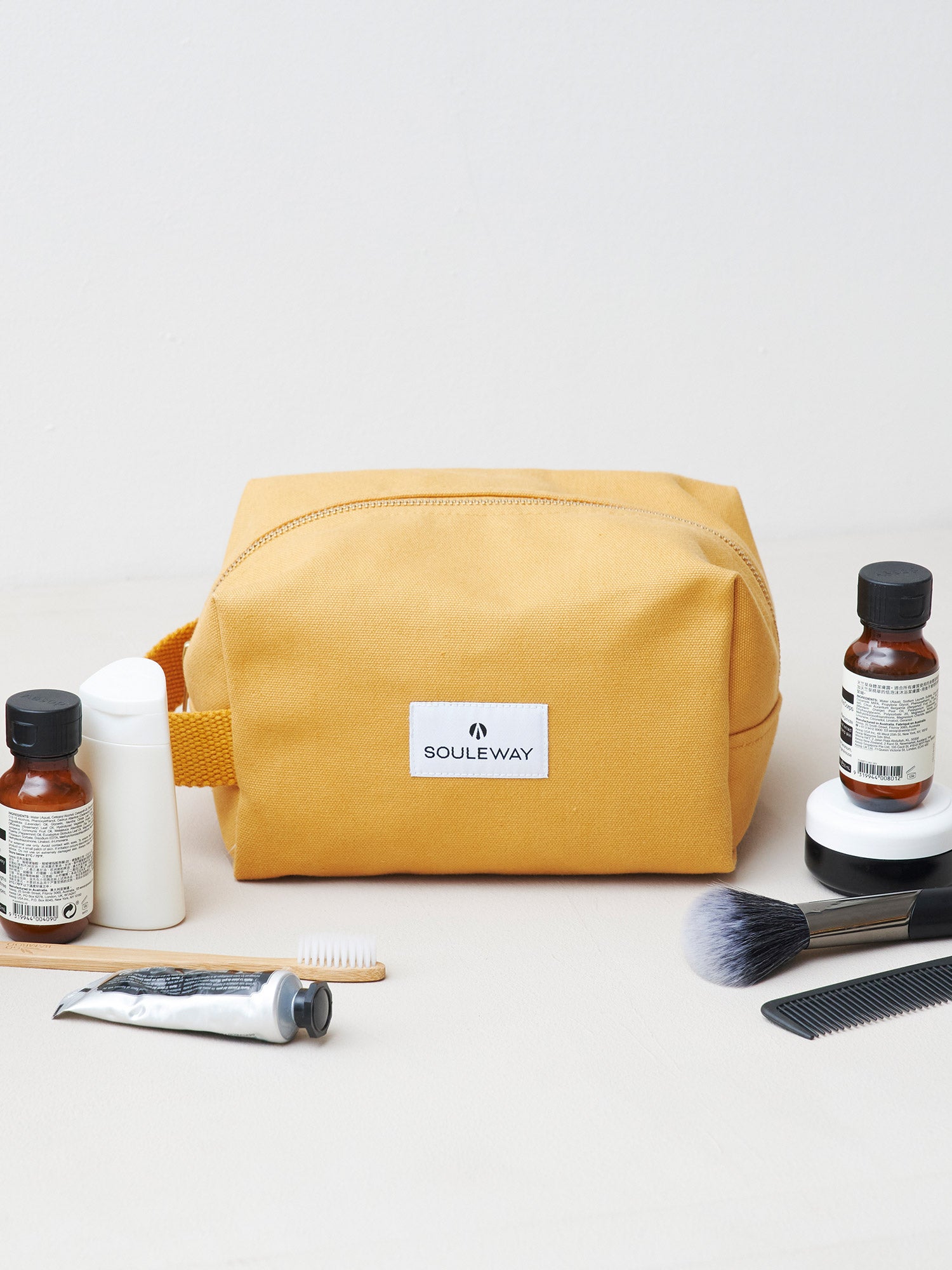Dieser kleine Kulturbeutel wird aus wasserabweisendem Canvas gefertigt. Mit dem minimalistischen Souleway-Look und dem funktionalen Innenleben mit drei Innenfächern begleitet er dich zuverlässig auf jeder zukünftigen Reise.