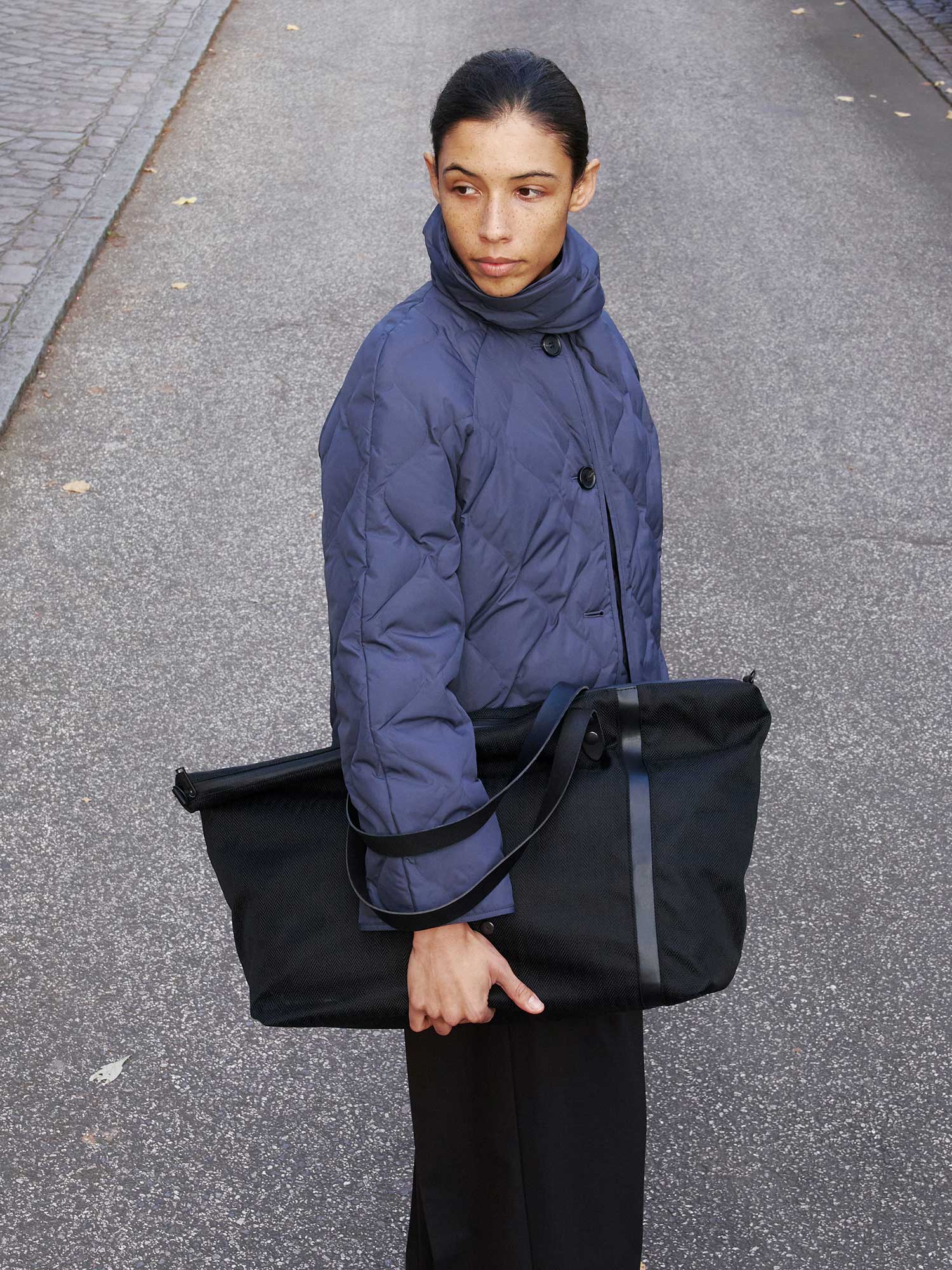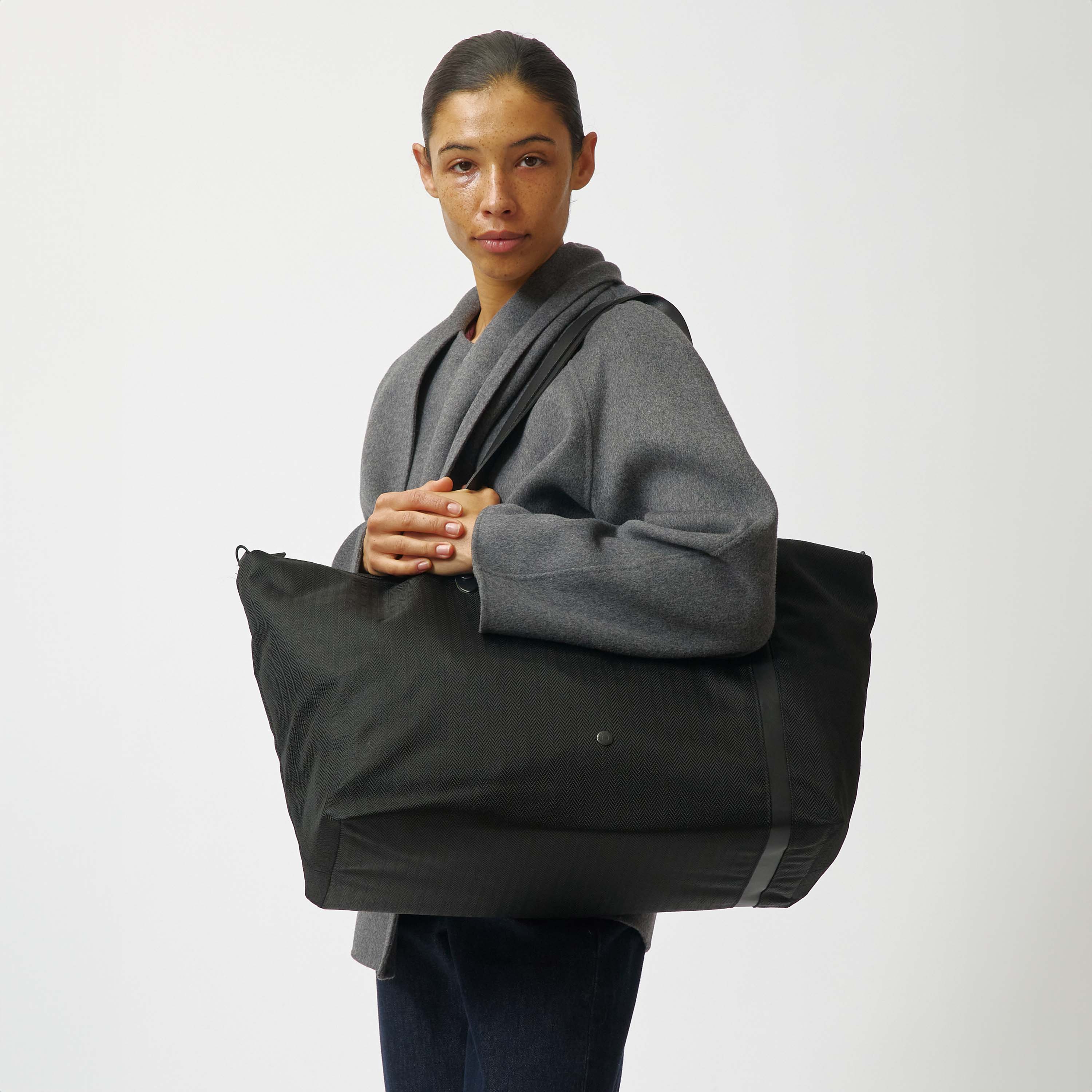 Das leichte, funktionale Nylongewebe ist nicht nur robust, sondern sorgt gleichzeitig für ein besonders geringes Eigengewicht des Weekenders. Durch die schlanke Form kann er bequem unter der Achsel getragen werden – oder mithilfe des zusätzlich gelieferten Tragegurts auch vollgepackt angenehm auf der Schulter oder crossbody.